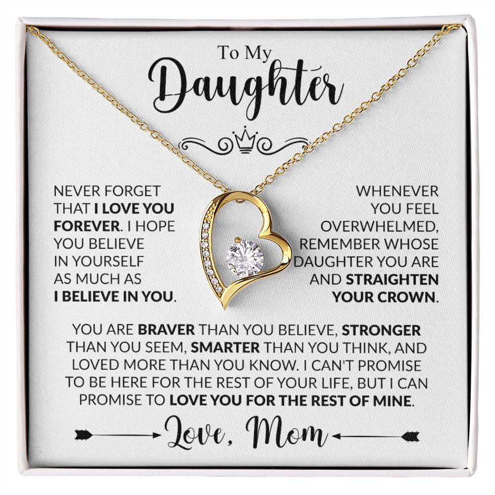 Mensaje sincero: Para mi hija, nunca olvides que te amo por siempre. Espero que creas en ti misma tanto como yo creo en ti. Cuando te sientas abrumada, recuerda de quién eres hija y endereza tu corona. Eres más valiente de lo que crees, más fuerte de lo que pareces, más inteligente de lo que crees y más amada de lo que crees. No puedo prometerte estar aquí por el resto de tu vida, pero sí puedo prometerte amarte por el resto de la mía. Con amor, mamá