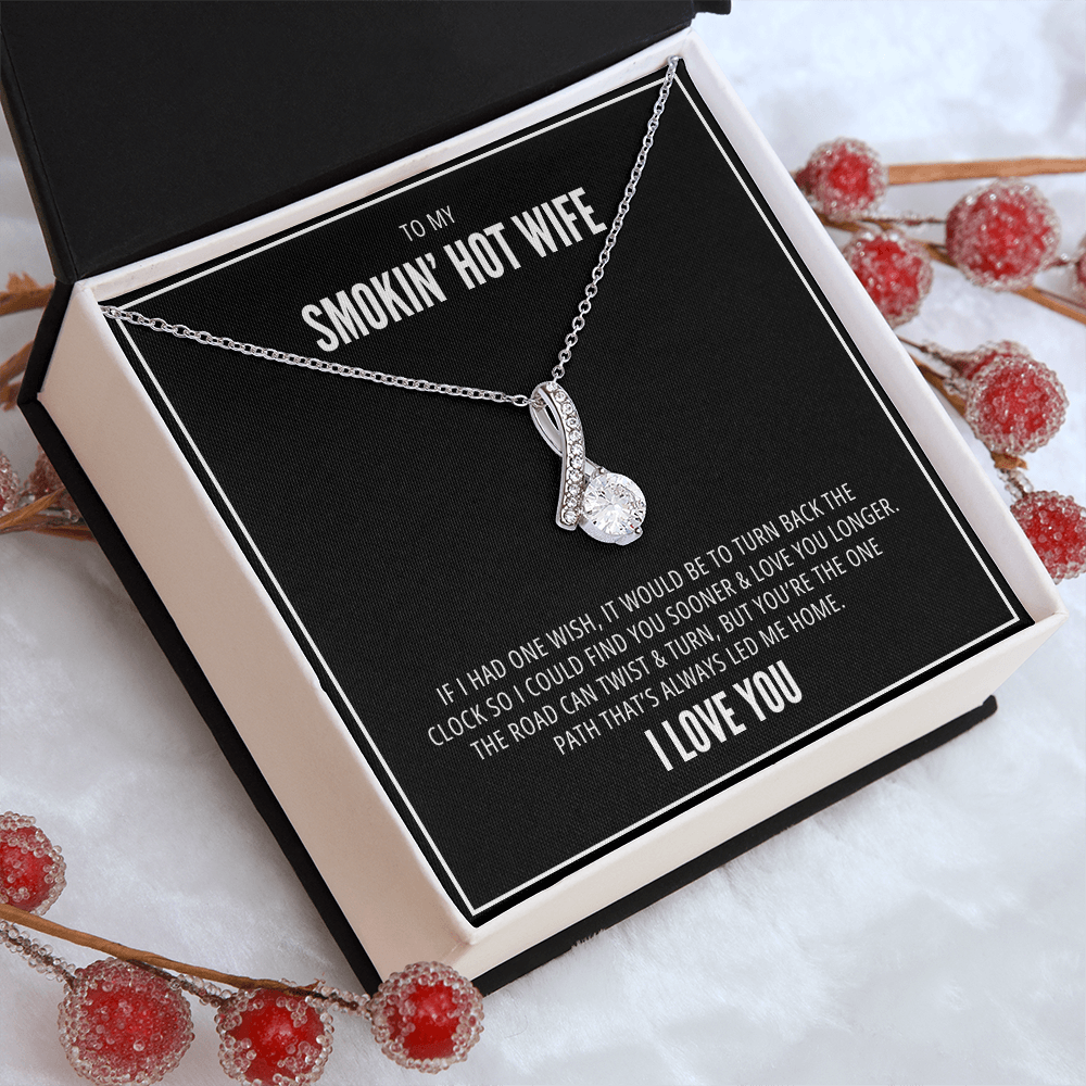Imagine her reaction when she opens this stunning gift! The Alluring Beauty necklace features a petite ribbon shaped pendant that is sure to dazzle your special someone. Whether it's a birthday or anniversary, make sure to get her a gift she will love for years to come.