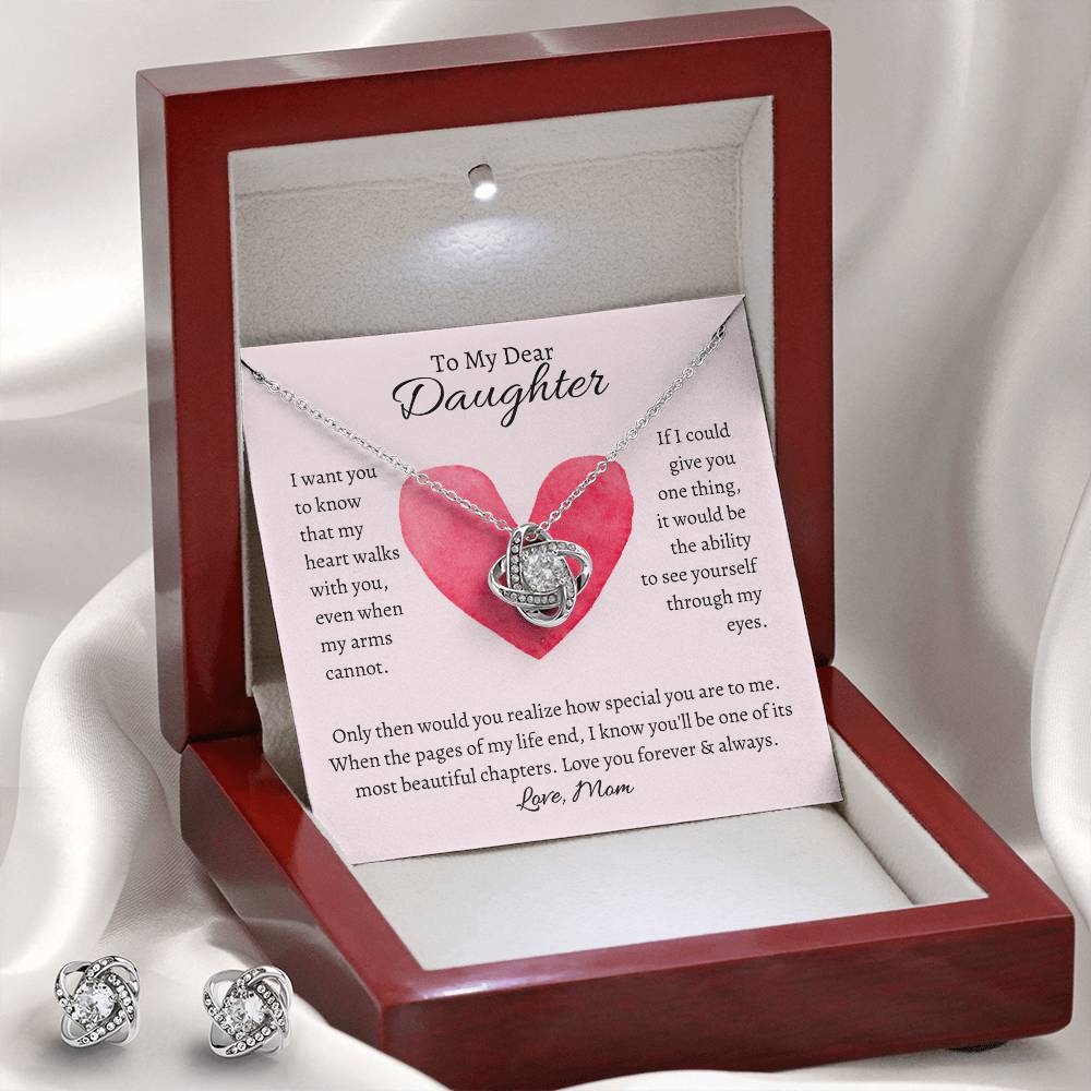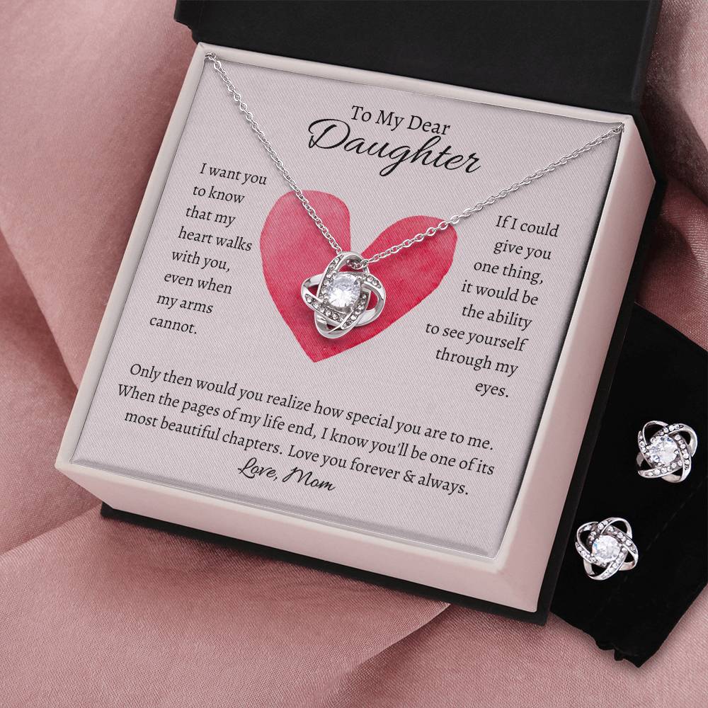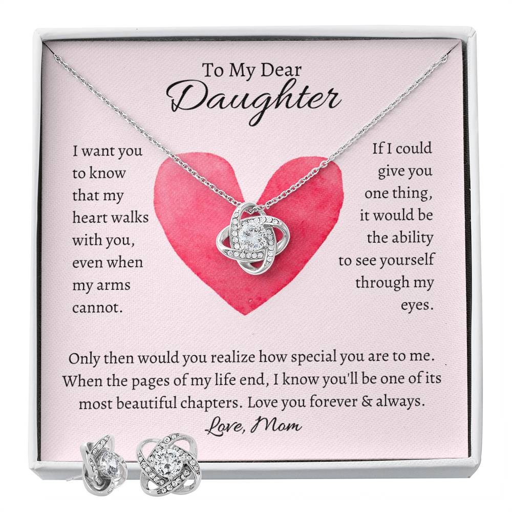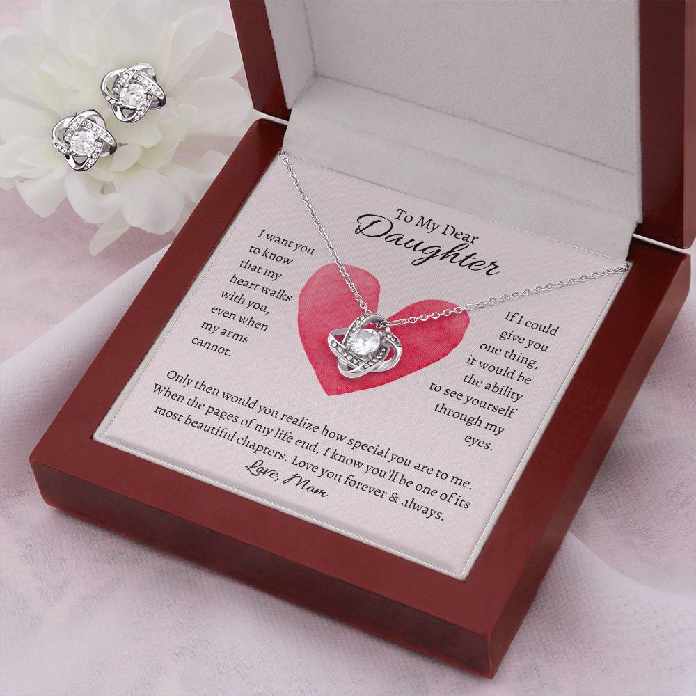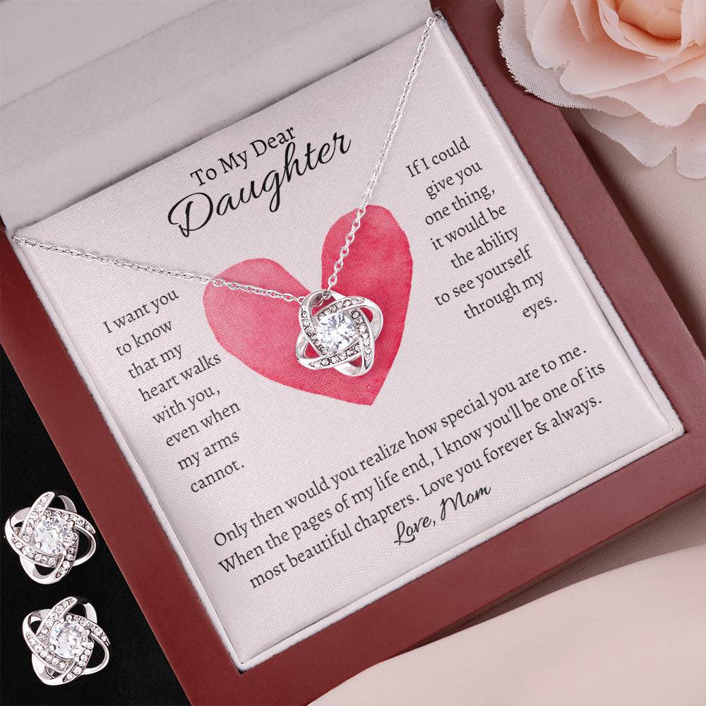 Heartfelt Message: To My Beautiful Daughter, I want you to know that my heart walks with you, even when my arms cannot. If I could give you one thing, it would be the ability to see yourself through my eyes. Only then would you realize how special you are to me. When the pages of my life end, I know you'll be one of its most beautiful chapters. Love you forever & always. Love, mom