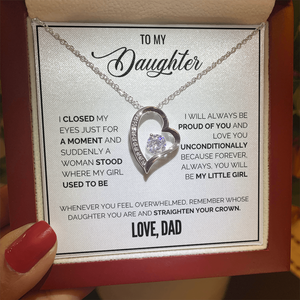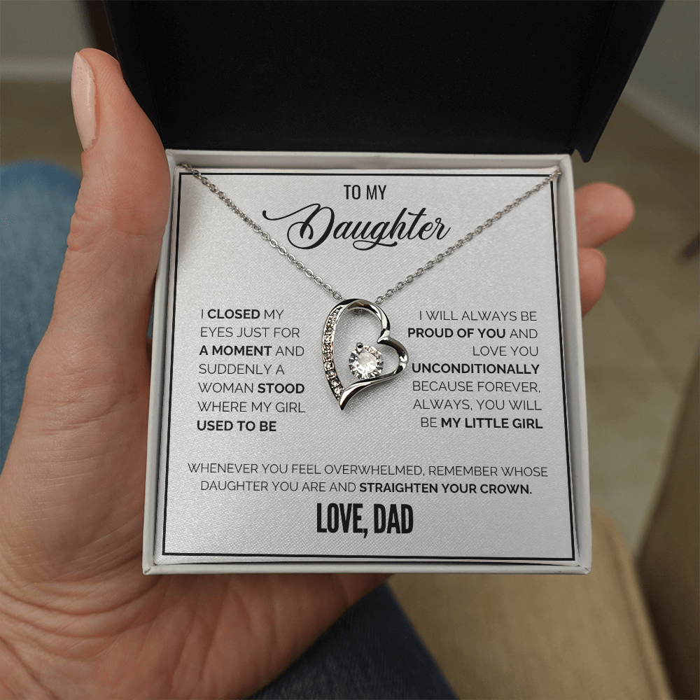 Heartfelt Message: To My Daughter. I closed my eyes for a moment and suddenly a woman stood where a girl used to be. I will always be proud of you and love you unconditionally because forever, always, you will be my little girl. Whenever you feel overwhelmed, remember whose daughter you are and straighten your crown. LOVE, DAD