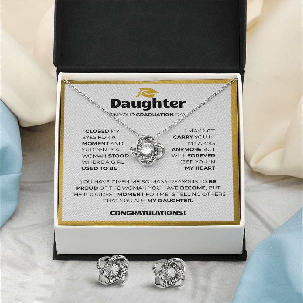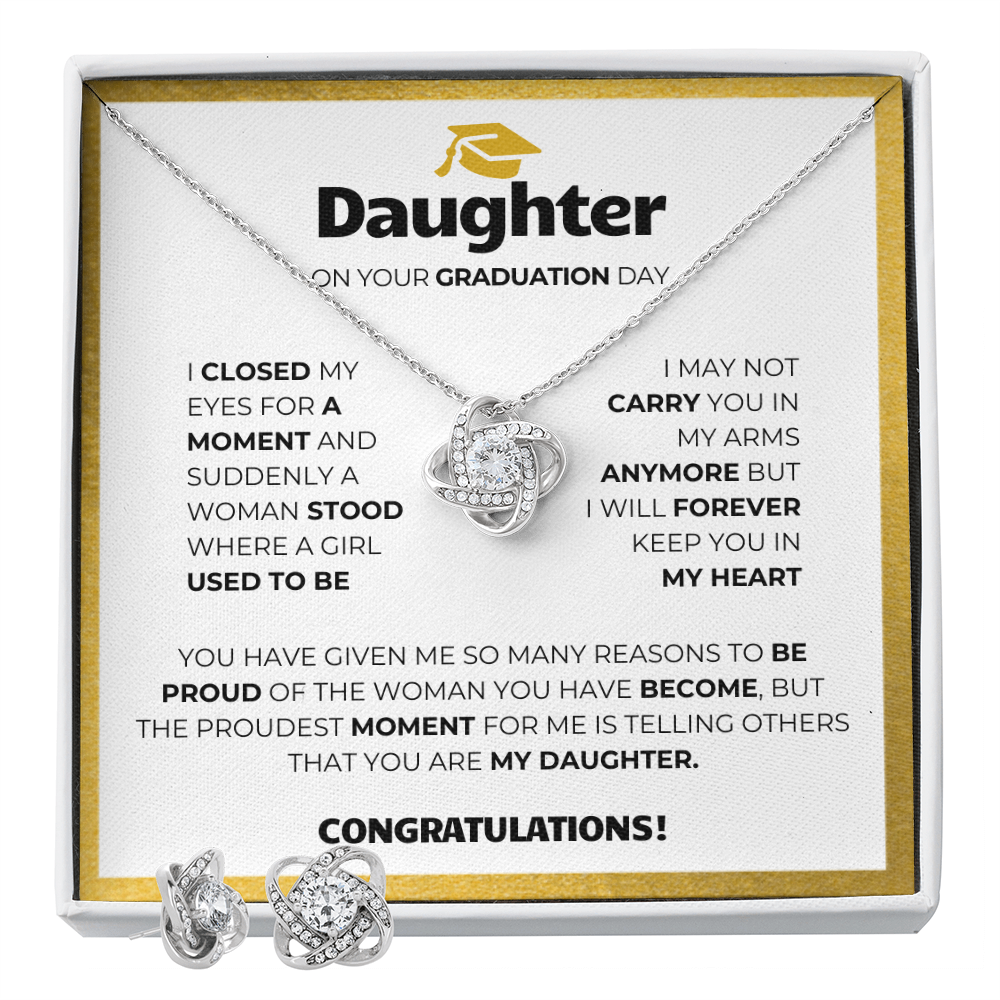 Heartfelt Message: To My Daughter... I closed my eyes for just a moment and suddenly a woman stood where a girl used to be. I may not carry you in my arms anymore but I will forever carry you in my heart. You have given me so many reasons to be proud of the woman you have become, but the proudest moment for me is telling others that you are my daughter. Congratulations!