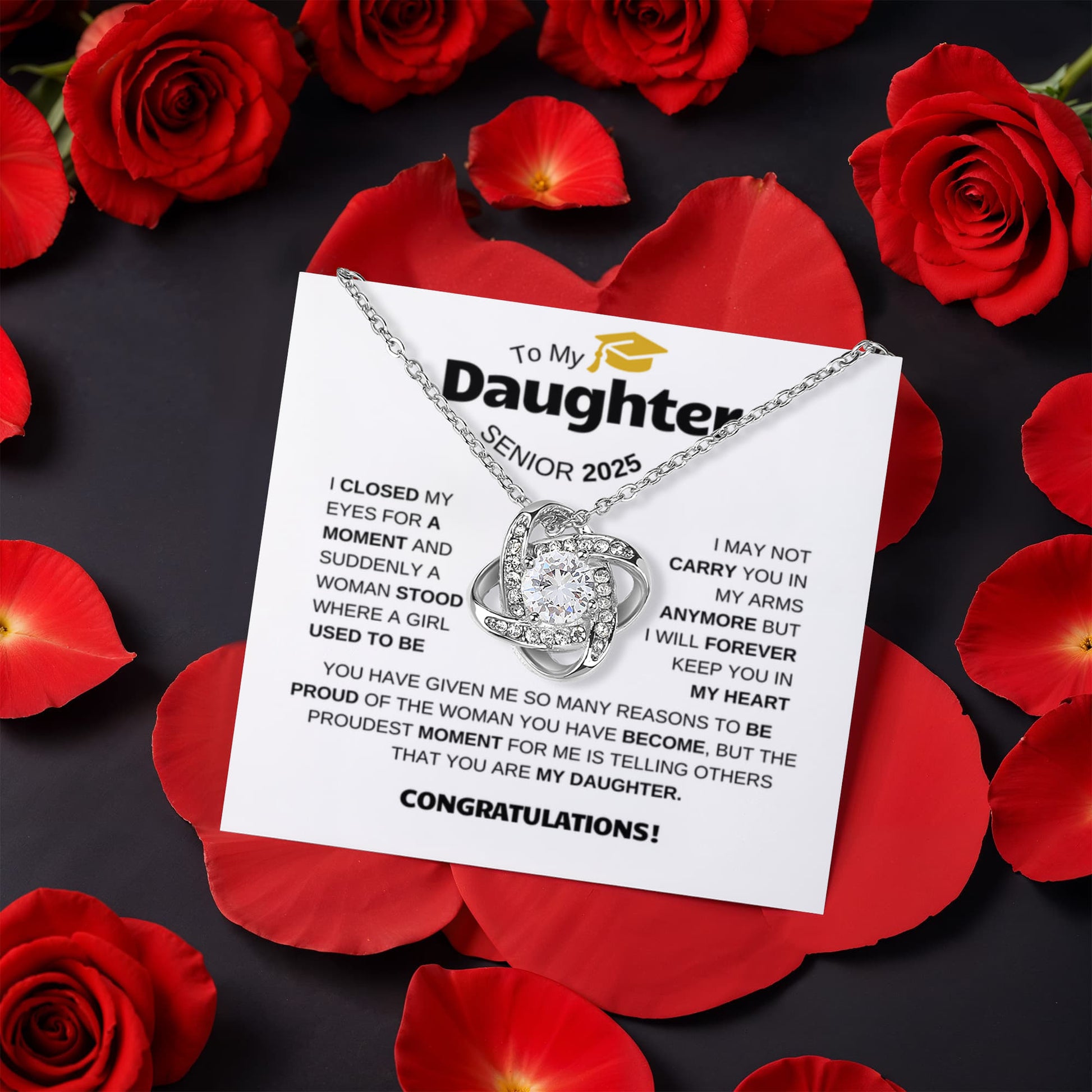 Heartfelt Message: To My Daughter... I closed my eyes for just a moment and suddenly a woman stood where a girl used to be. I may not carry you in my arms anymore but I will forever carry you in my heart. You have given me so many reasons to be proud of the woman you have become, but the proudest moment for me is telling others that you are my daughter. Congratulations!