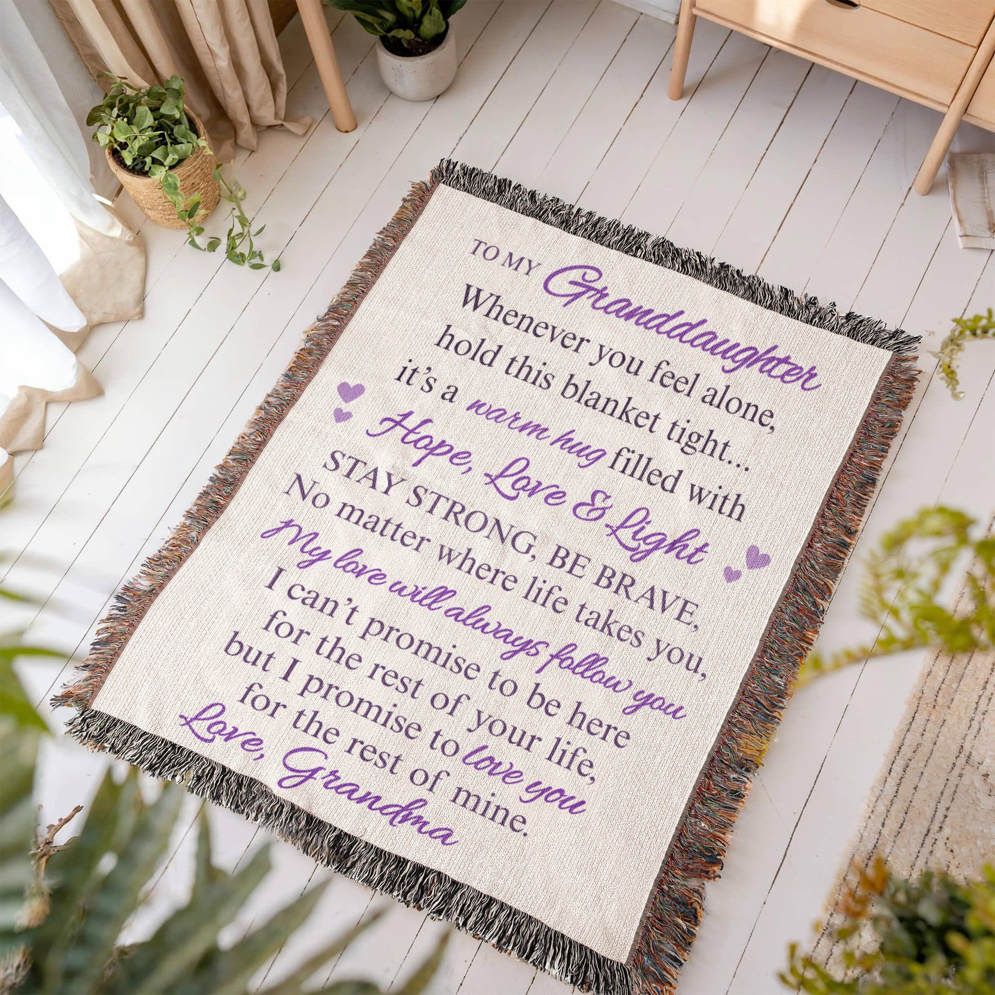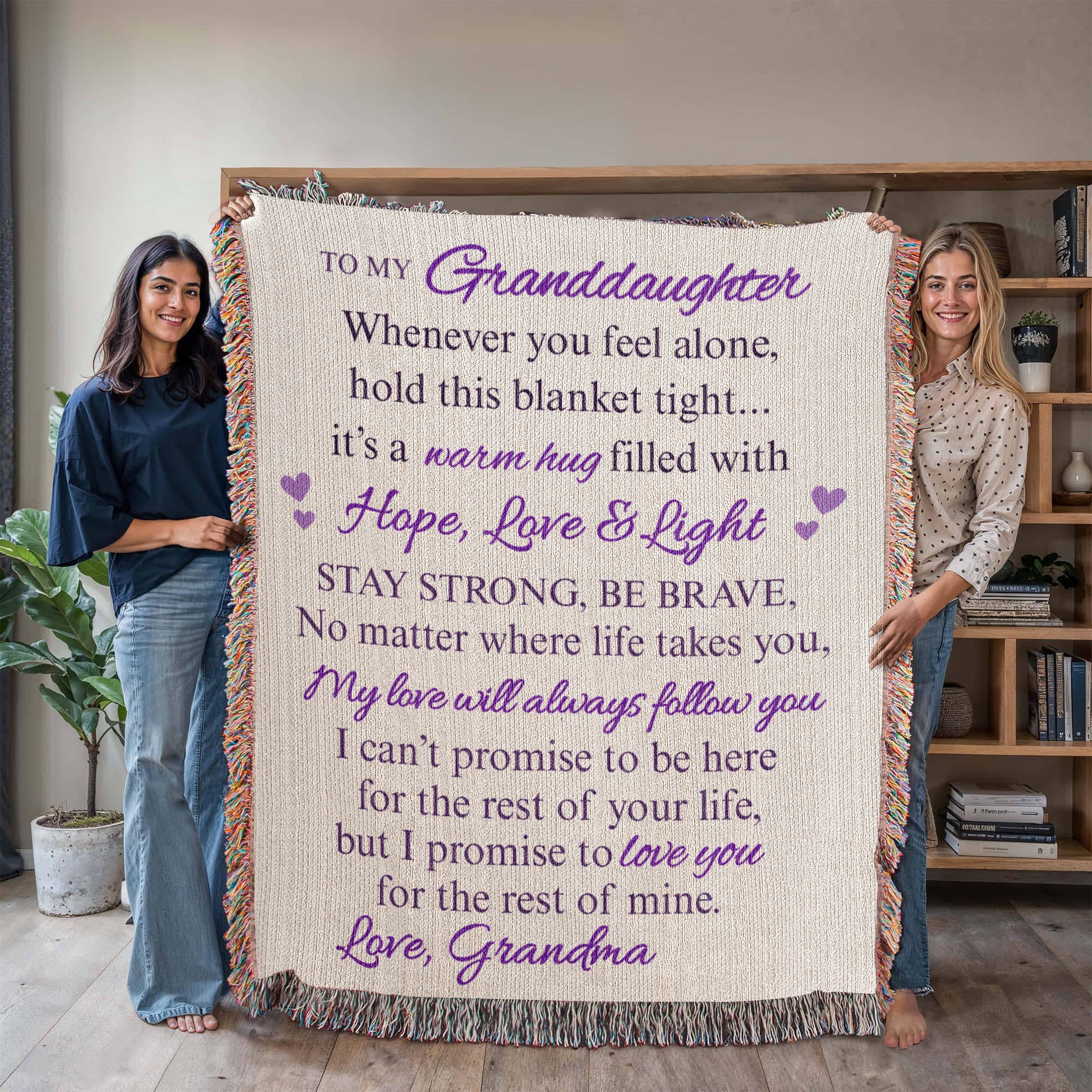 To My Granddaughter... Whenever you feel alone, hold this blanket tight. It’s a warm hug filled with Hope, Love & Light 💜