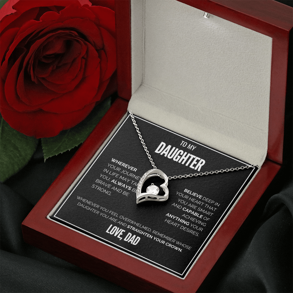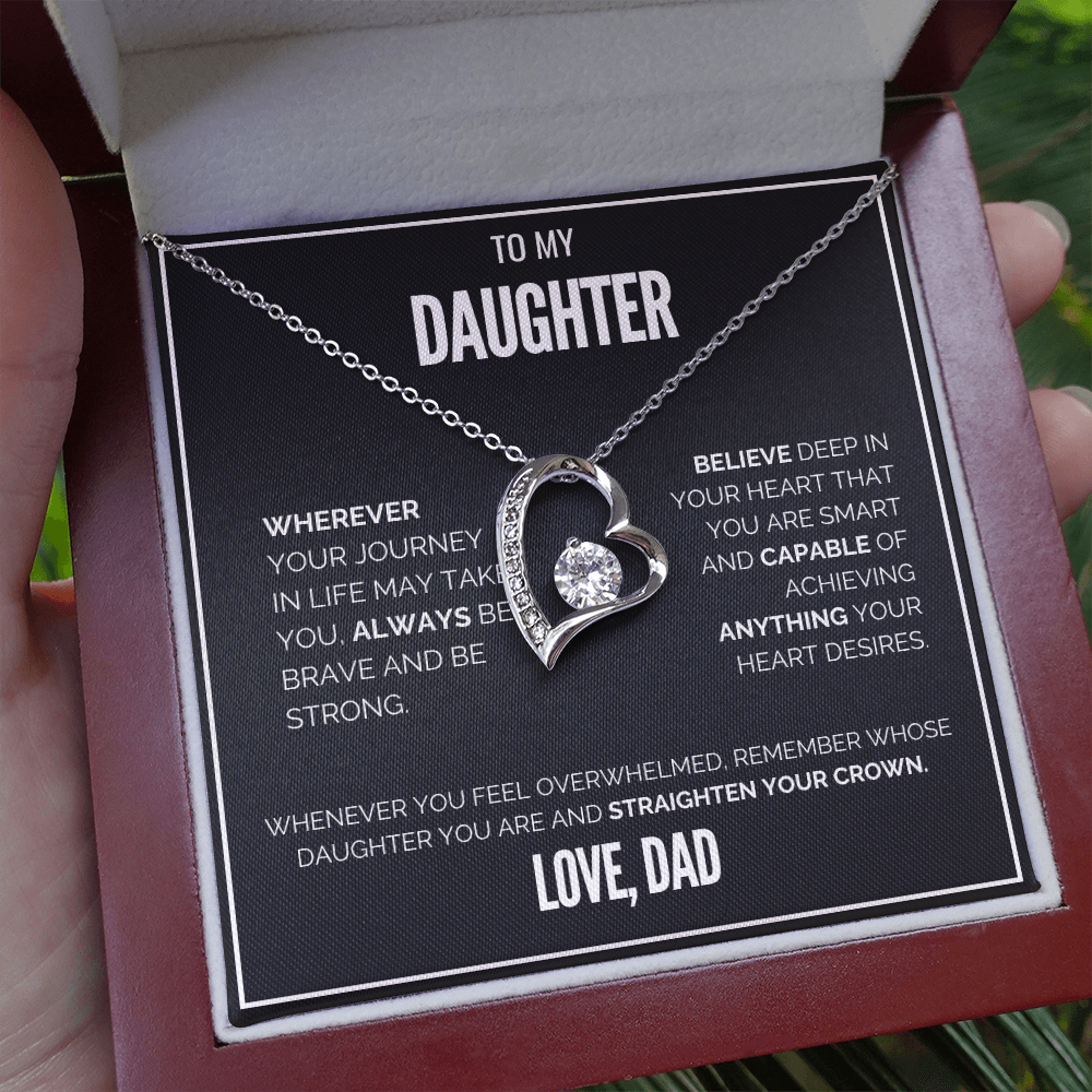 Heartfelt Message: To My Daughter. Wherever your journey in life may take you, always be brave and be strong. Believe deep in your heart that you are smart and capable of achieving anything your heart desires. Whenever you feel overwhelmed, remember whose daughter you are and straighten your crown. LOVE, DAD