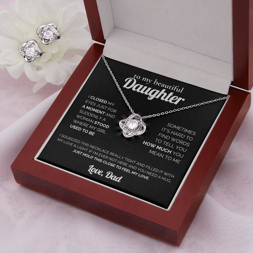 Heartfelt Message: To My Beautiful Daughter. I closed my eyes just for a moment and suddenly a woman stood where my girl used to be. Sometimes it's hard to find words to tell you how much you mean to me. I squeezed this necklace really tight and filled it with my love & light. If I’m ever not here and you need a hug, just hold this close to feel my love. LOVE, DAD