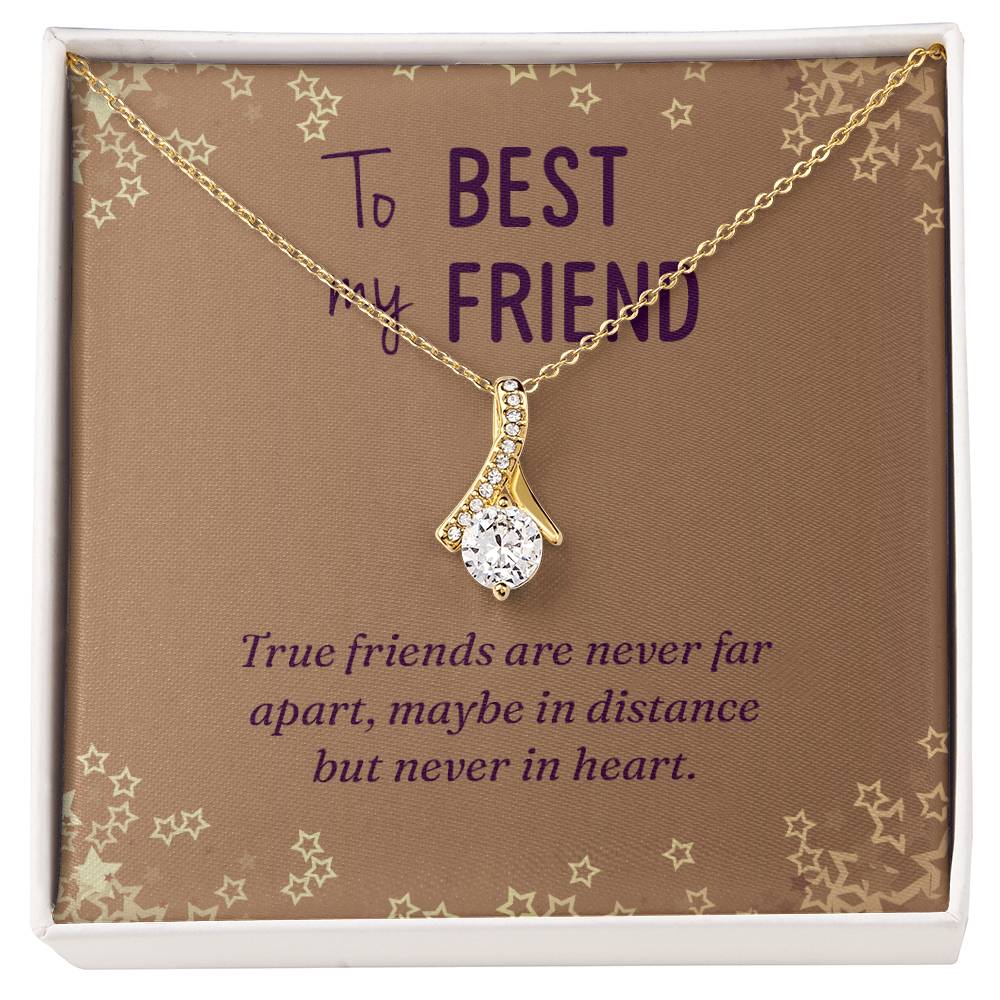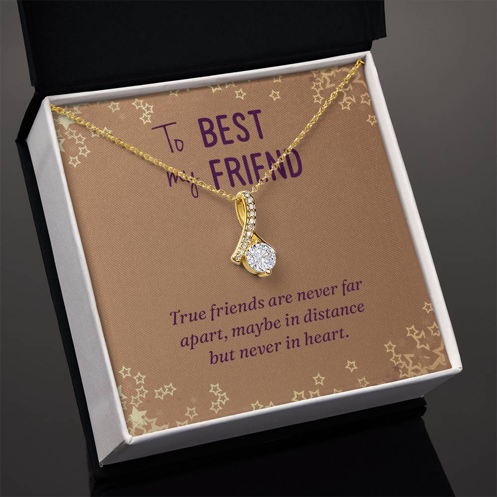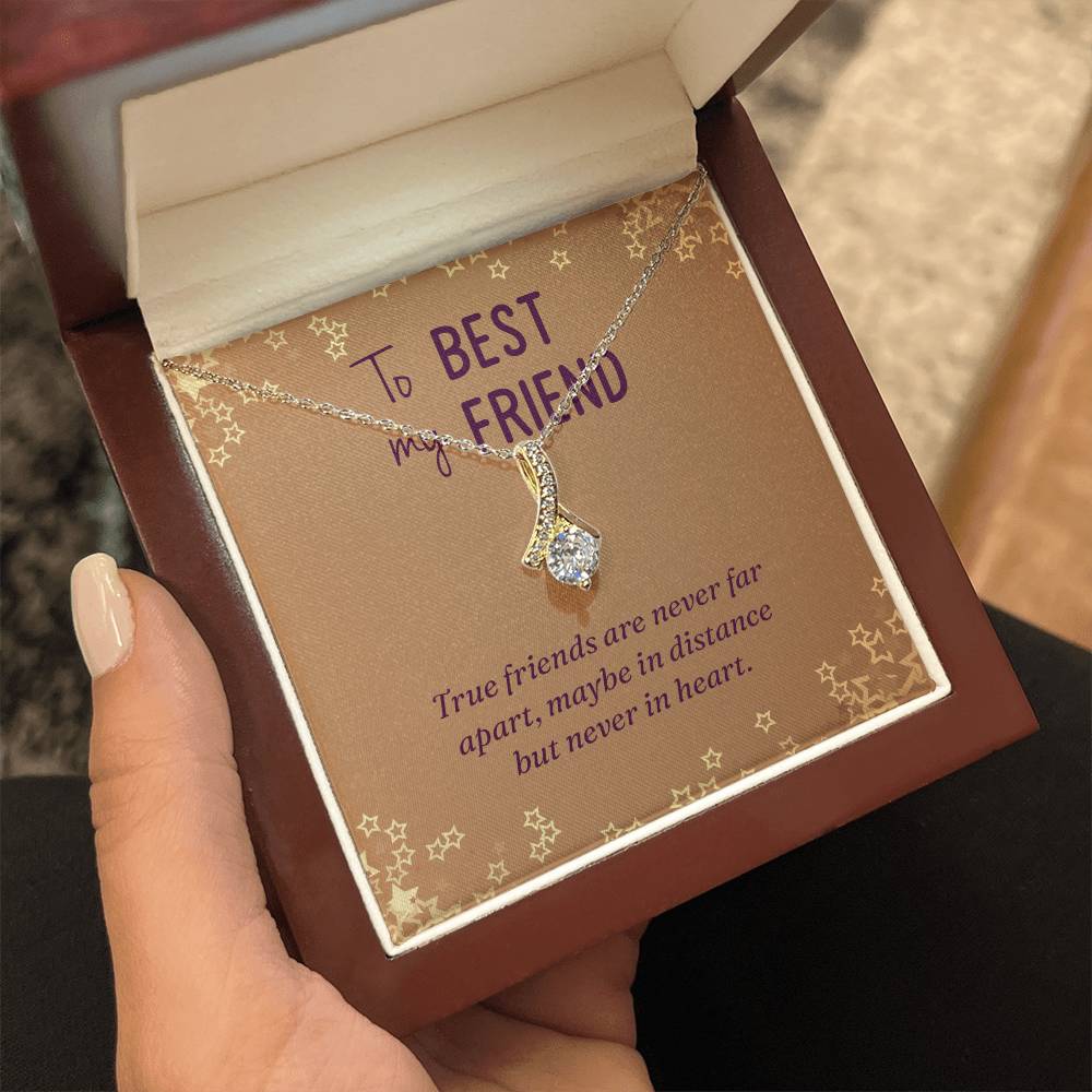 Imagine her reaction when she opens this stunning gift! The Alluring Beauty necklace features a petite ribbon shaped pendant that is sure to dazzle your best friend. Whether it's a birthday or anniversary, make sure to get her a gift she will love for years to come.