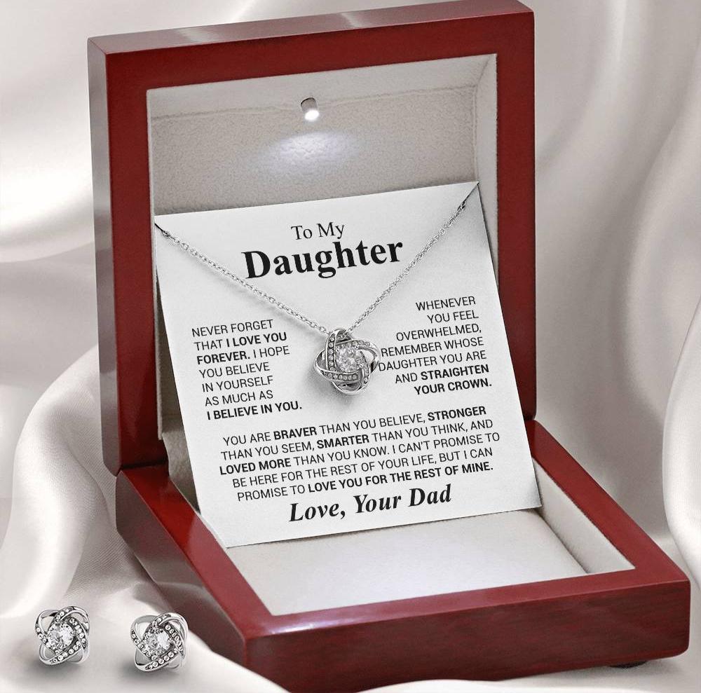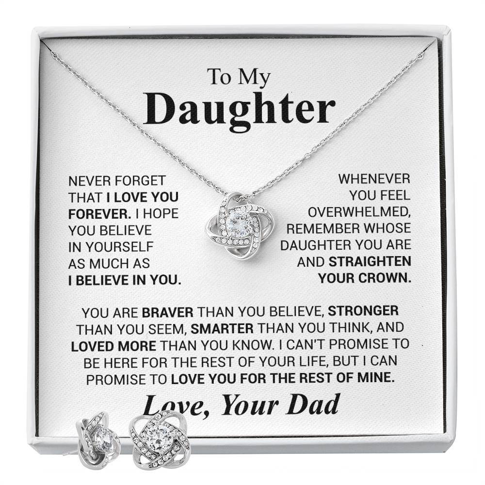 Heartfelt Message: To My Daughter Never forget that I love you forever. I hope you believe in yourself as much as I believe in you. Whenever you feel overwhelmed, remember whose daughter you are and straighten your crown. You are braver than you believe, stronger than you seem, smarter than you think, and loved more than you know. I can't promise to be here for the rest of your life, but I can promise to love you for the rest of mine. Love, Your Dad