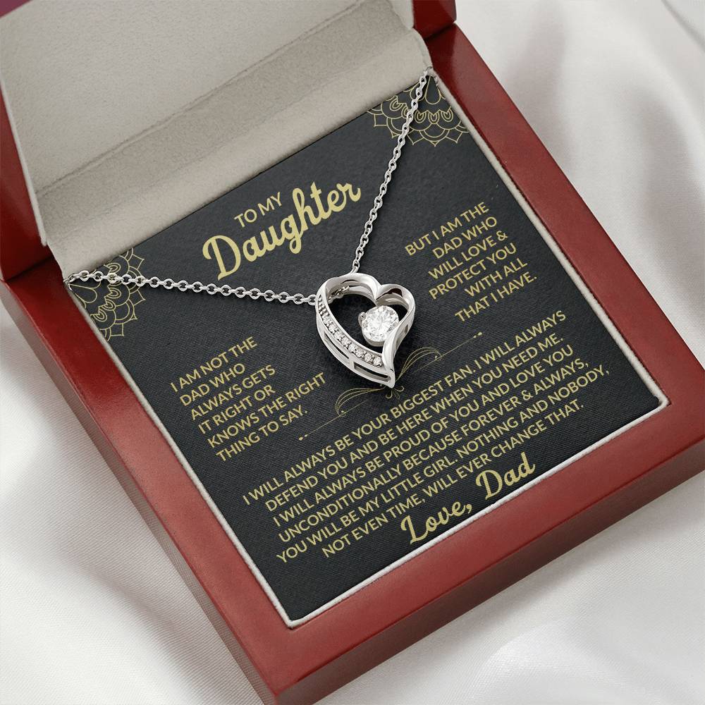 Heartfelt Message: I am not the dad that always gets it right or knows the right thing to say. But I am the dad that will love and protect you with all that I have. I will always be your biggest fan. I will always defend you and be here when you need me. I will always be proud of you and love you unconditionally because forever and always, you will be my little girl. Nothing and nobody, not even time will ever change that. Love, Dad