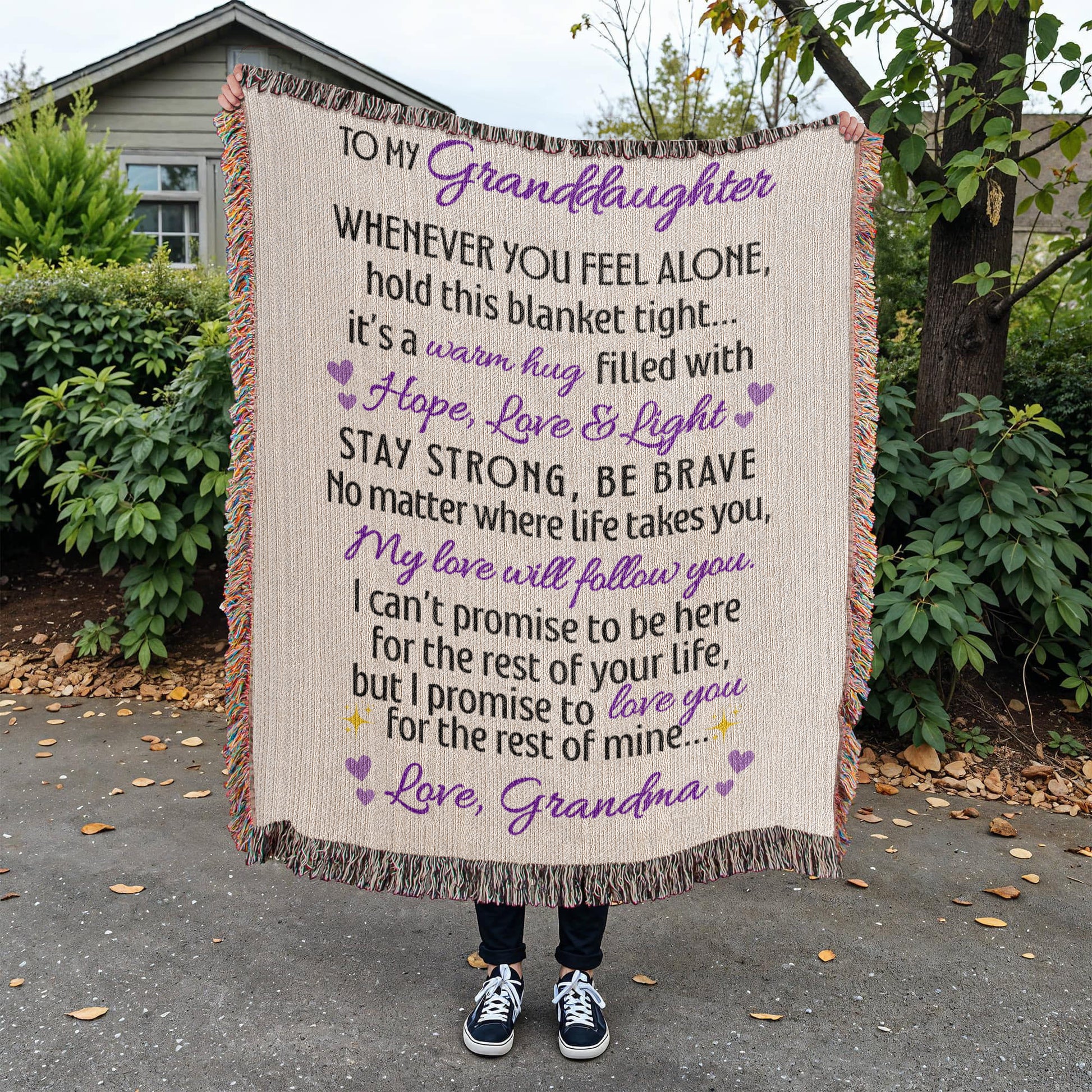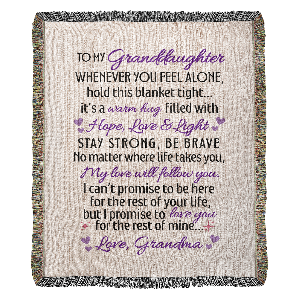 To My Granddaughter... Whenever you feel alone, hold this blanket tight. It’s a warm hug filled with Hope, Love & Light 💜