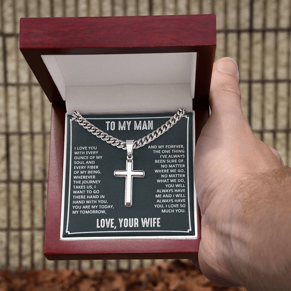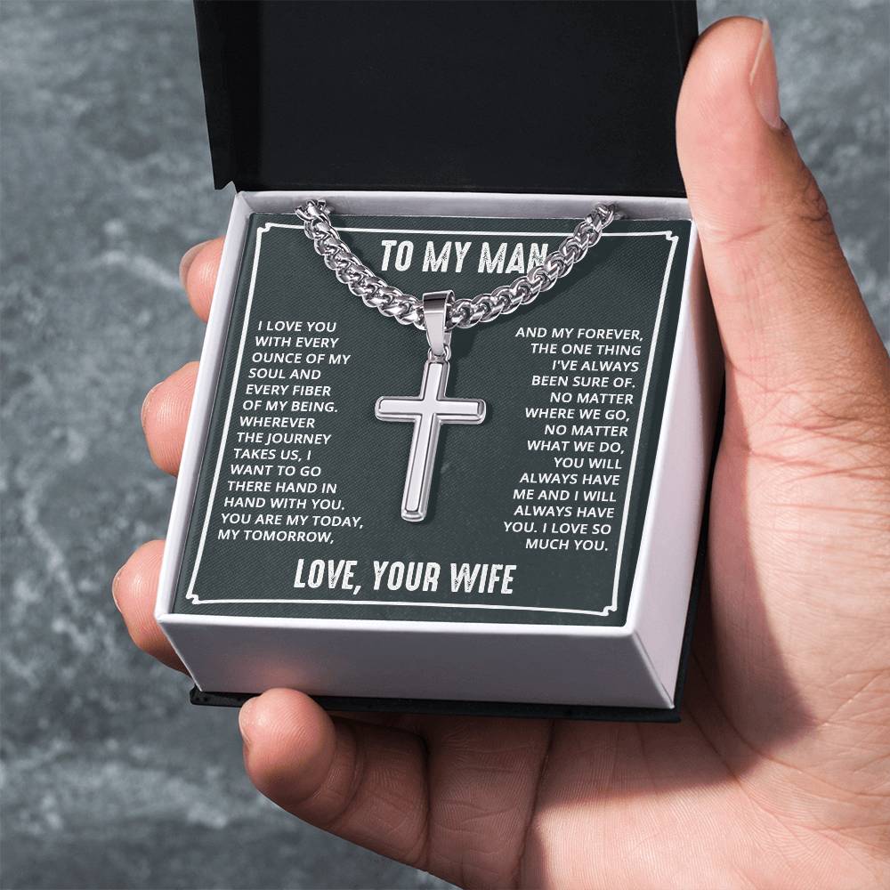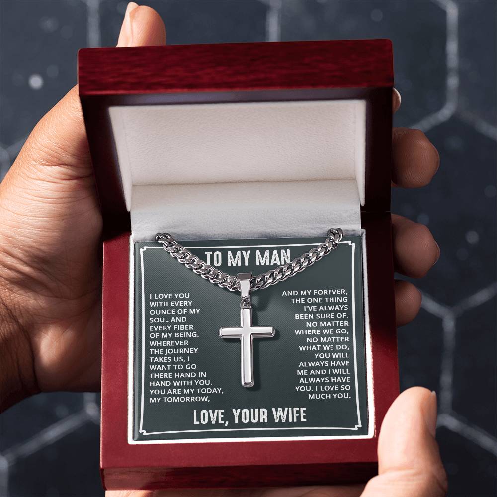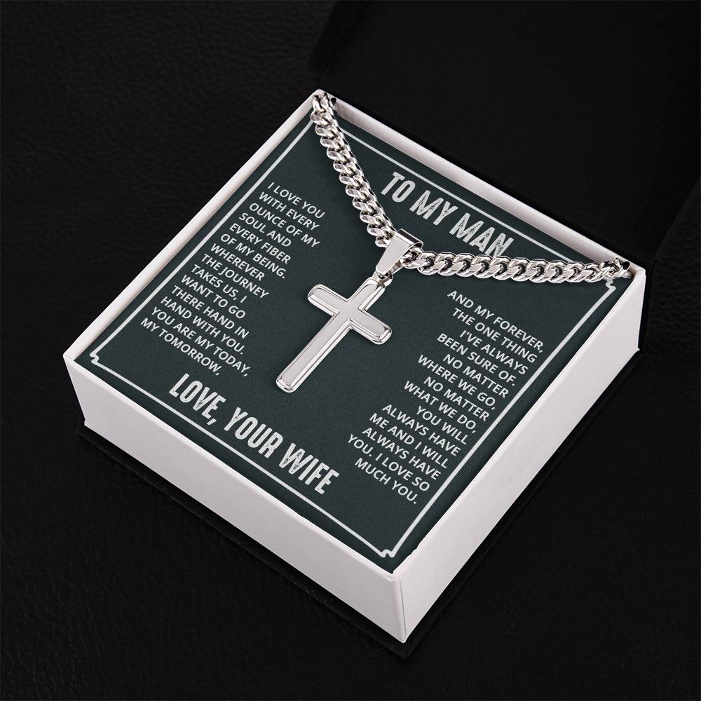 Wear your faith proudly with this Cuban Chain with Artisan Cross Necklace. Perfect for special occasions or everyday wear, this makes a wonderful gift idea for you or your loved one. Personalizing the back of the cross pendant will surely make this gift treasured for years to come!