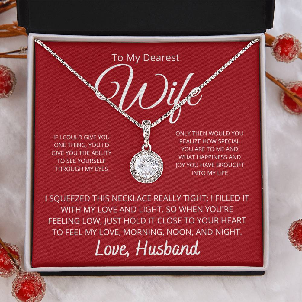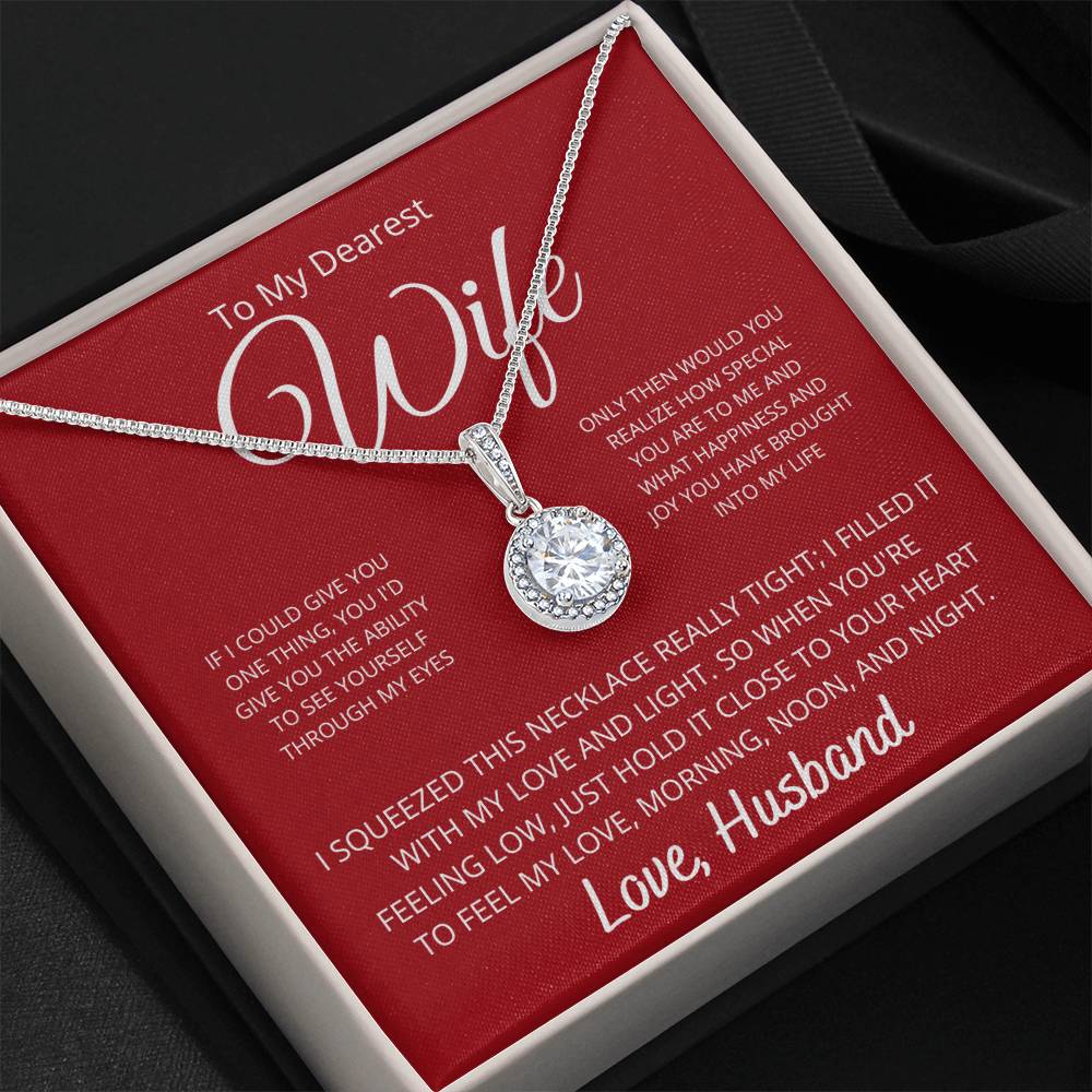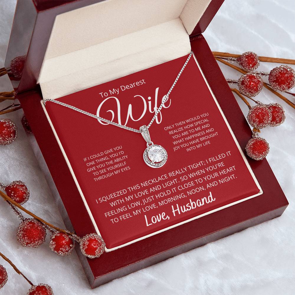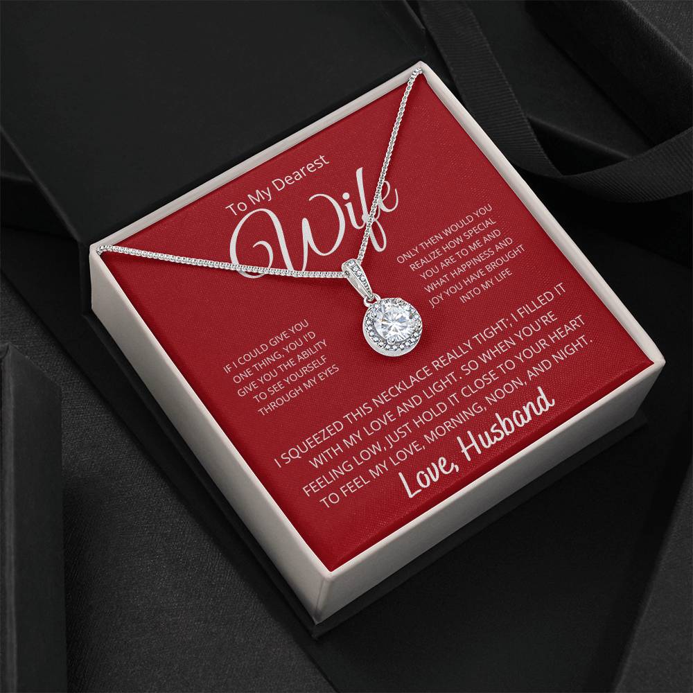 I squeezed this necklace really tight; I filled it with my love and light. So when you're feeling low, just hold it close to your heart to feel my love, morning, noon, and night.