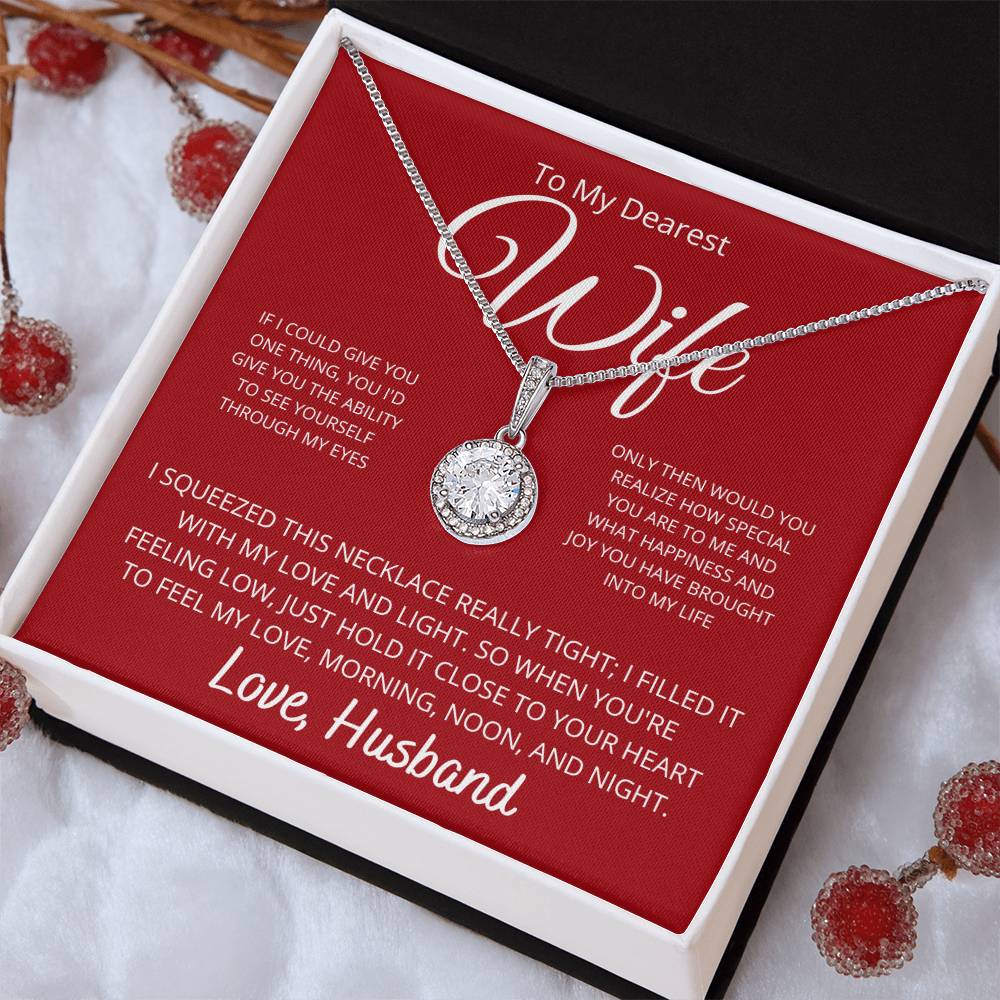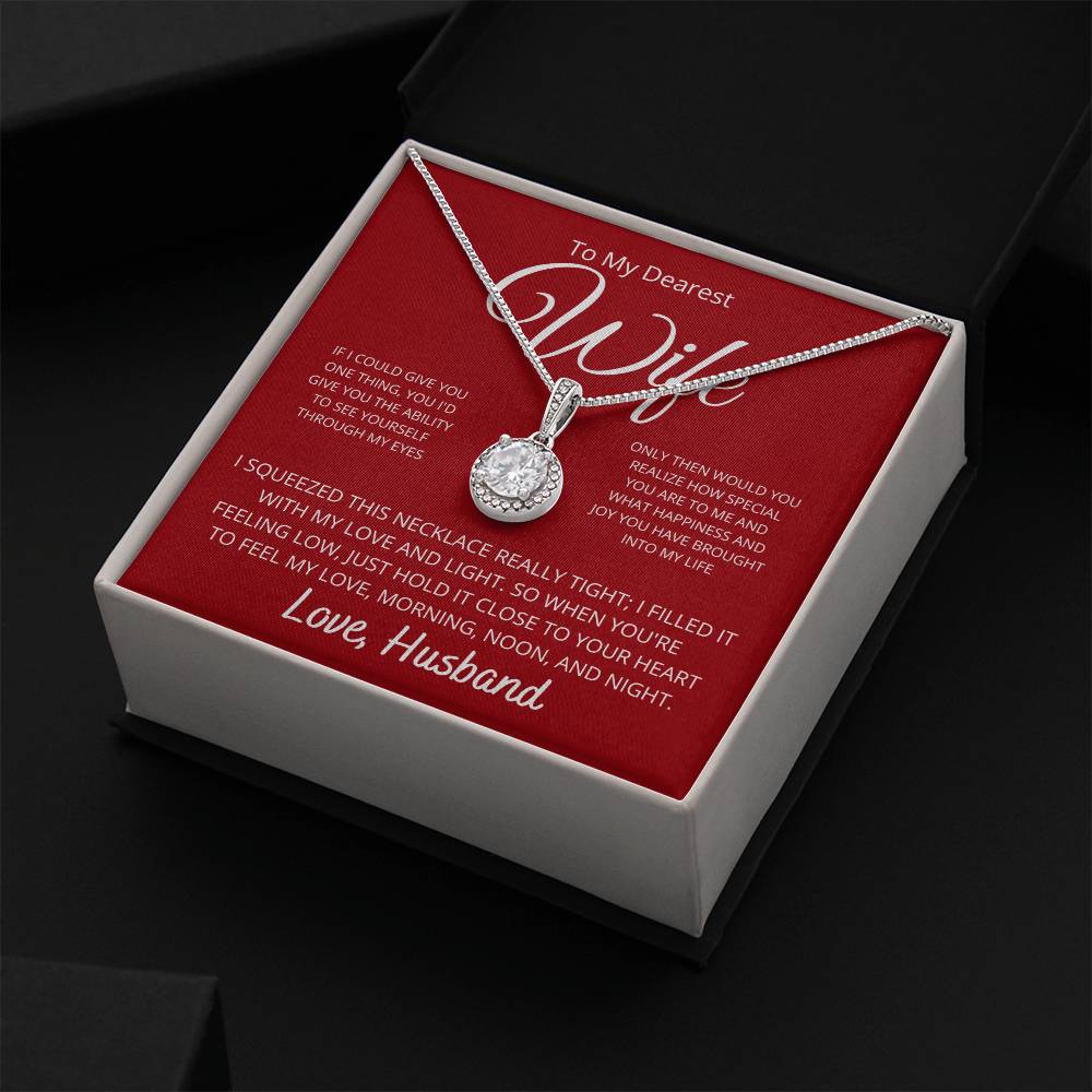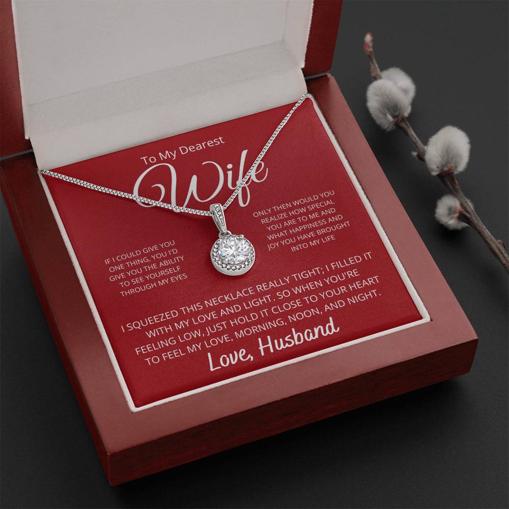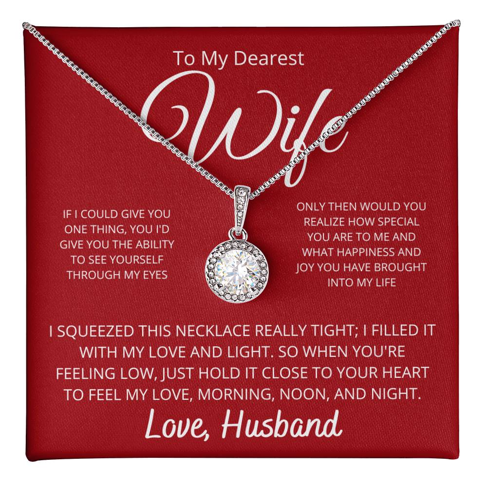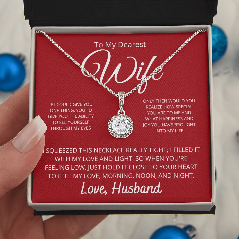 I squeezed this necklace really tight; I filled it with my love and light. So when you're feeling low, just hold it close to your heart to feel my love, morning, noon, and night.